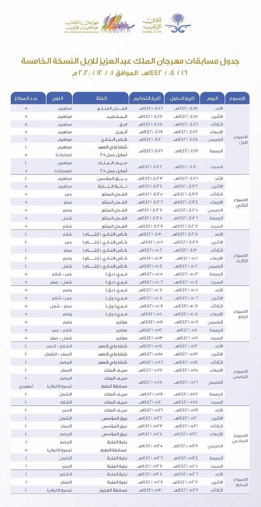 جدول المهرجان ( مهرجان الملك عبدالعزيز للإبل - النسخة الخامسة )