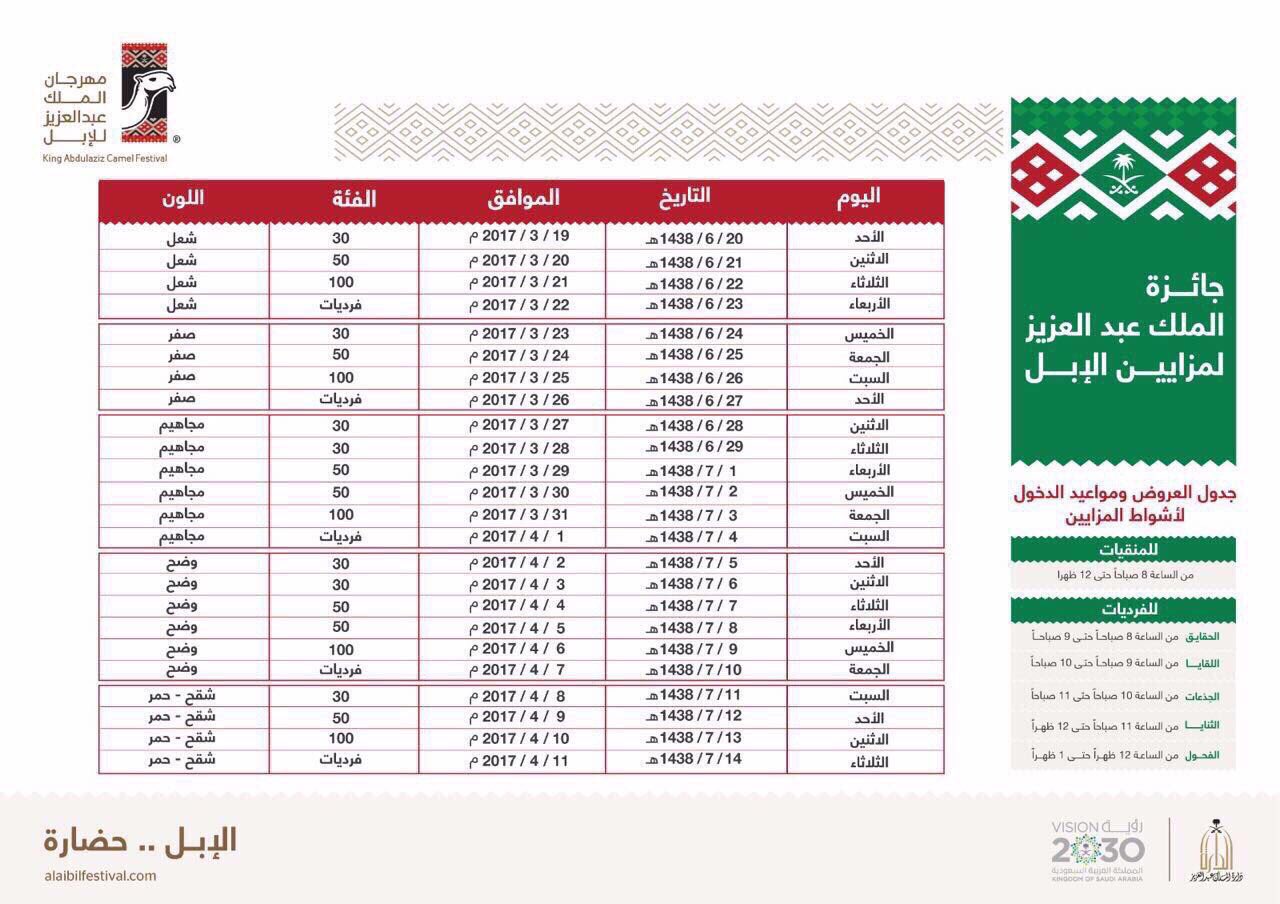 جدول المهرجان ( مهرجان الملك عبدالعزيز للإبل - النسخة الأولى )